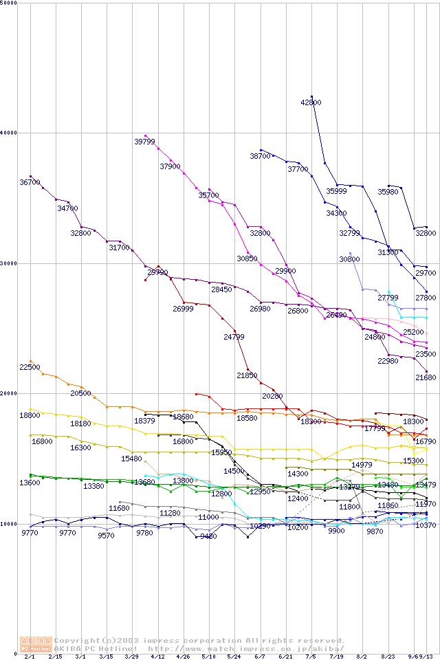 CPU主要製品の最安値推移