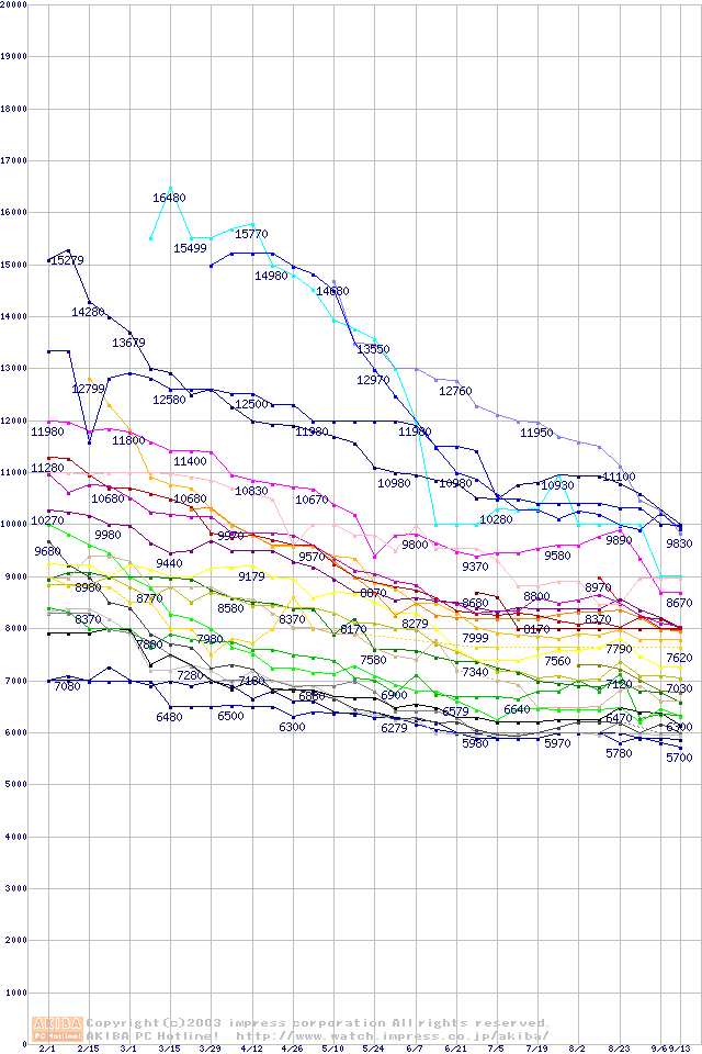 HDD主要製品の最安値推移