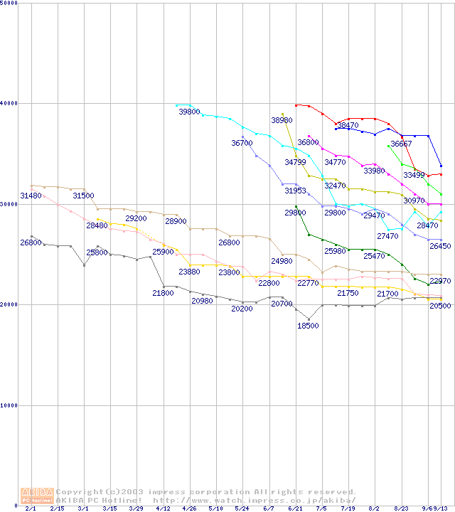 HDD主要製品の最安値推移