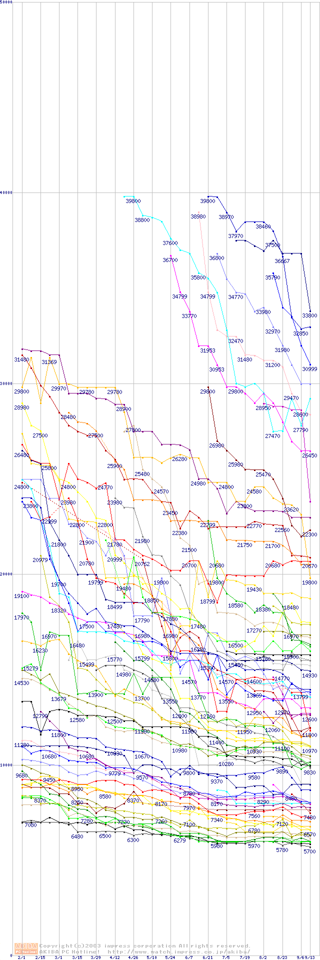 HDD 20GB~30GB未満(5400rpmクラス)の最安値推移
