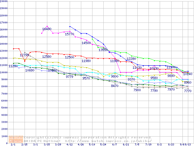 HDD 100~160GB未満(7200rpmクラス)の最安値推移