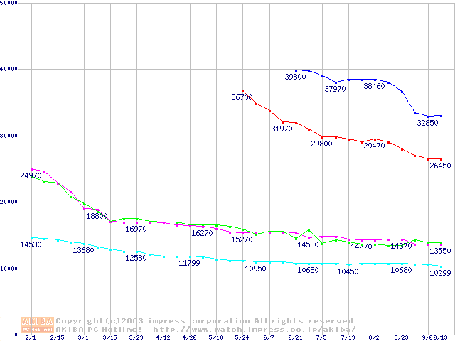 | [↓次グラフ]: | HDD 30GB~40GB未満(7200rpmクラス)の最安値推移 |