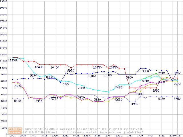 メモリ主要製品(最安値5千円~1万円未満)の最安値推移