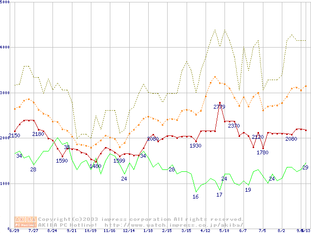 PC133 SDRAM DIMM CasLatency=3の最安値推移