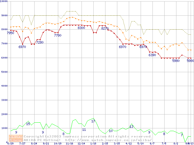 WD Protege (5400rpm,UltraATA/100)の最安値推移