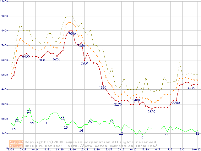 メモリ主要製品の最安値推移