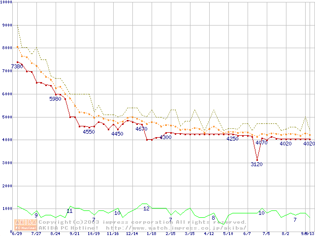 Socket A (PGA,FSB 200MHz,L2 64KB,Morgan)の最安値推移