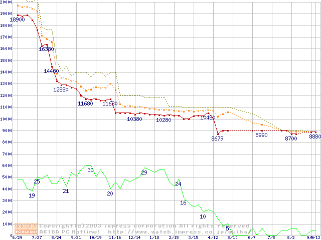 Athlon XP 2000+ (1.67GHz) リテールパッケージの価格推移