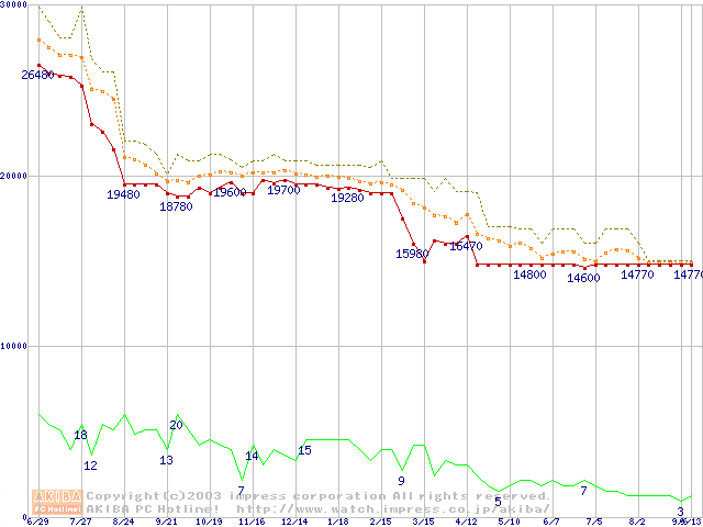 Athlon MP 2000+ (1.67GHz) リテールパッケージの価格推移