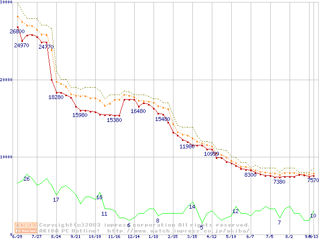 Socket A (OPGA,FSB 266MHz,L2 256KB,Thoroughbred)の最安値推移