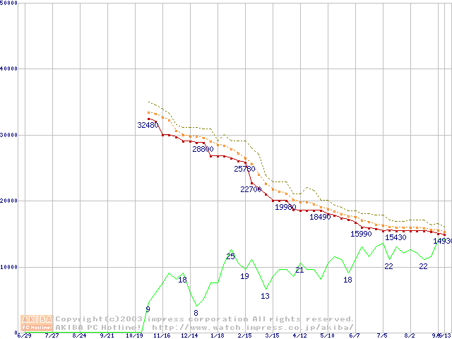 DiamondMax Plus 9 (7200rpm,8MB,UltraATA/133,FDB)の最安値推移
