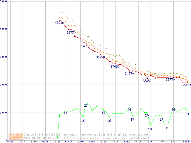 DiamondMax Plus 9 (7200rpm,8MB,UltraATA/133,FDB)の最安値推移