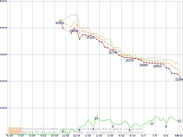 MKシリーズ (9.5mm,5400rpm,16MB,FDB)の最安値推移