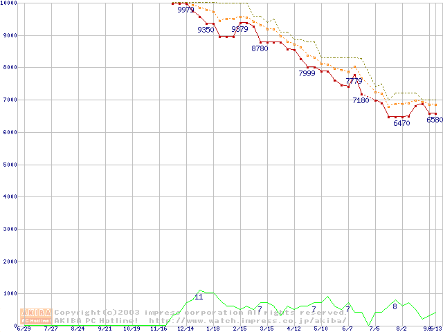 Deskstar 180GXP (7200rpm,2MB,UltraATA/100,FDB)の最安値推移