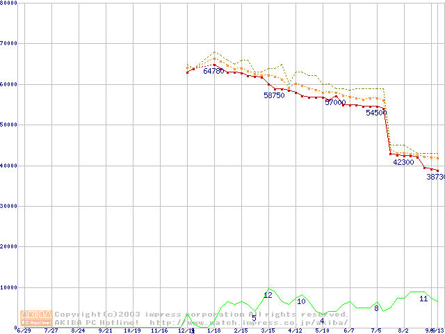 Xeon 2.80GHz(FSB533) リテールパッケージの価格推移