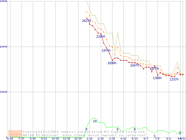 DiamondMax 16 (5400rpm,UltraATA/133,2MB,80GB/Platter,BB)の最安値推移