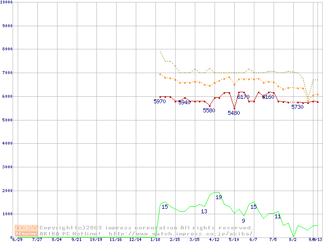 Socket A (OPGA,FSB 266MHz,L2 256KB,Thoroughbred)の最安値推移