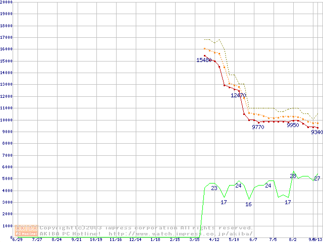 Socket 478 (micro-PGA,FSB 400MHz,L2 128KB,Northwood)の最安値推移