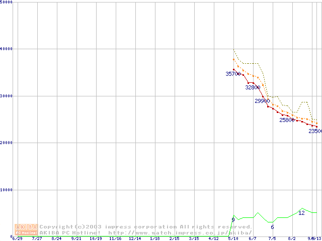 MKシリーズ (9.5mm,4200rpm,8MB,FDB,40GB/Platter)の最安値推移