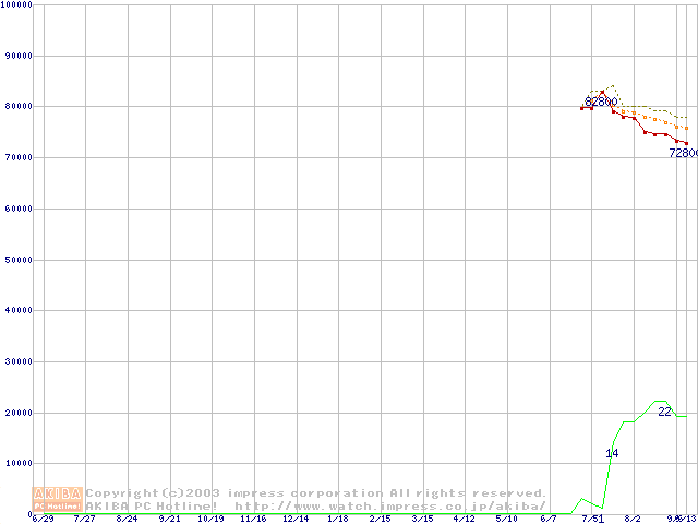 Socket 478 (micro-PGA,FSB 800MHz,L2 512KB,Hyper-Threading,Northwood)の最安値推移