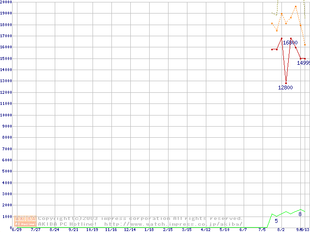 PC4000(DDR500) DDR SDRAM DIMMの最安値推移