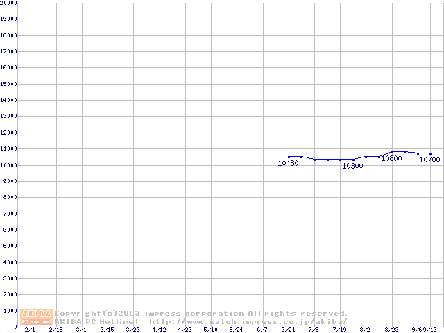 | [↑前グラフ]: | Travelstar DK23FB (9.5mm,5400rpm,UltraATA/100,8MB)の最安値推移 |