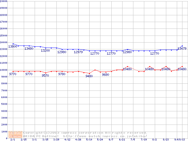 | [↓次グラフ]: | MHTシリーズ (9.5mm,4200rpm,UltraATA/100,2MB,FDB,40GB/Platter,FDB)の最安値推移 |