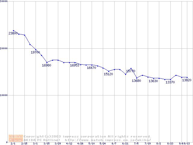 | [↓次グラフ]: | DiamondMax 16 (5400rpm,UltraATA/133,2MB,80GB/Platter,FDB)の最安値推移 |