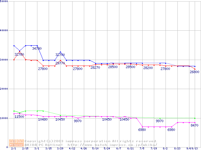 | [↓次グラフ]: | Socket 478 (micro-PGA,FSB 800MHz,L2 512KB,Hyper-Threading,Northwood)の最安値推移 |