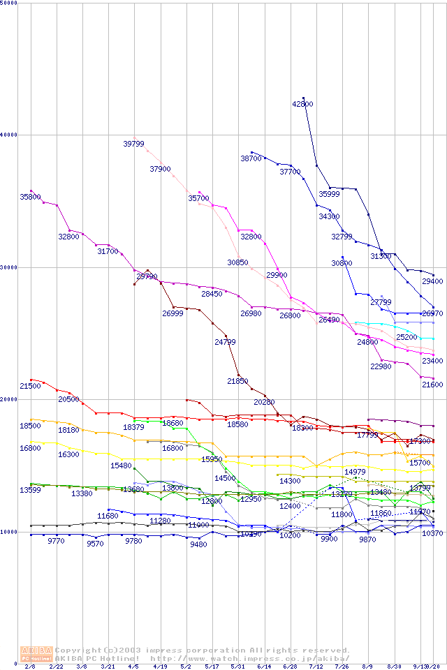 2.5インチHDD 80GB以上(9.5mm厚)の最安値推移