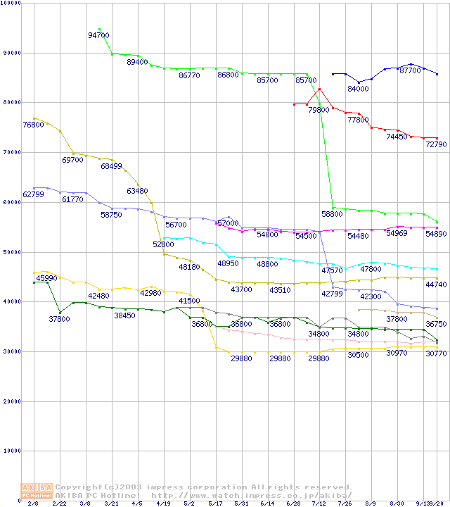 CPU主要製品(最安値3万円以上)の最安値推移