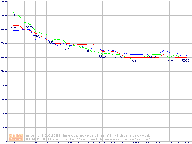 | [↓次グラフ]: | HDD 60GB~80GB未満(5400rpmクラス)の最安値推移 |