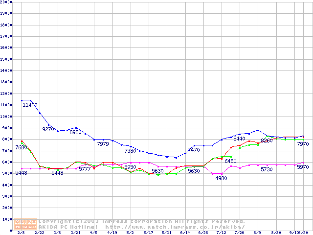 メモリ主要製品の最安値推移