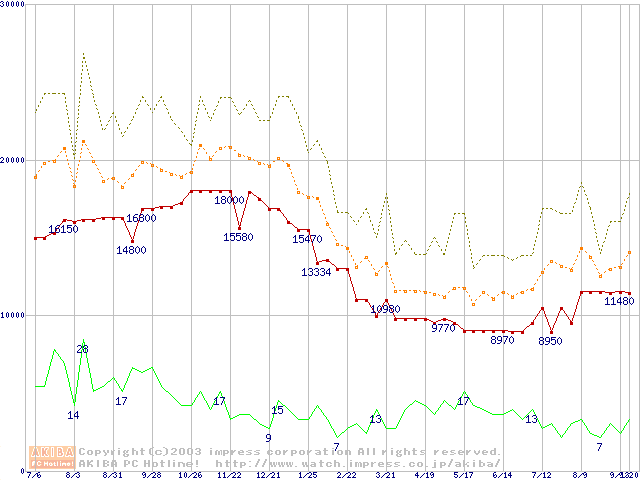 メモリ主要製品の最安値推移