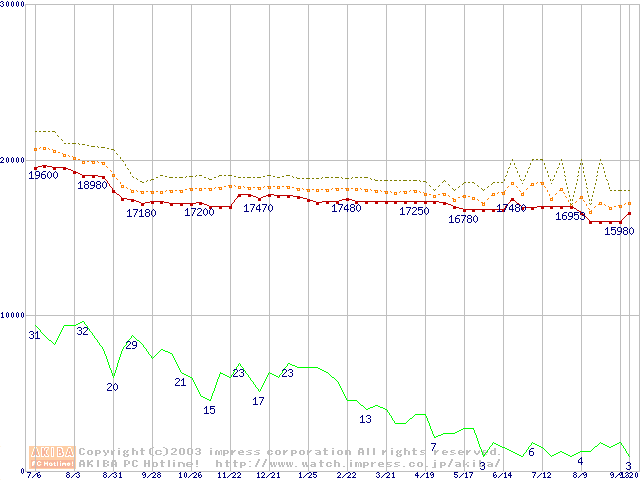 Pentium 4 1.80A GHz リテールパッケージの価格推移