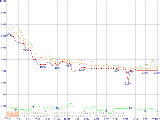 Socket A (PGA,FSB 200MHz,L2 64KB,Morgan)の最安値推移