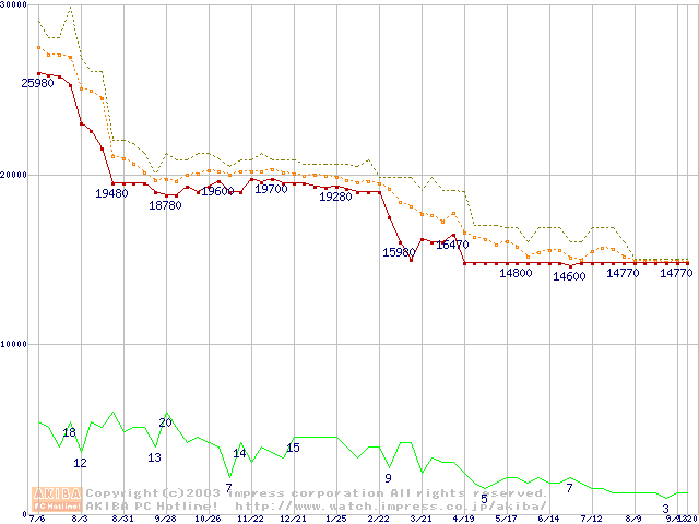 Athlon MP 2000+ (1.67GHz) リテールパッケージの価格推移