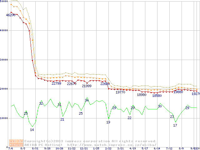 Socket 478 (micro-PGA,FSB 533MHz,L2 512KB,Northwood)の最安値推移