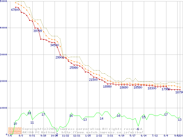 MKシリーズ (9.5mm,4200rpm,2MB,FDB,30GB/Platter)の最安値推移