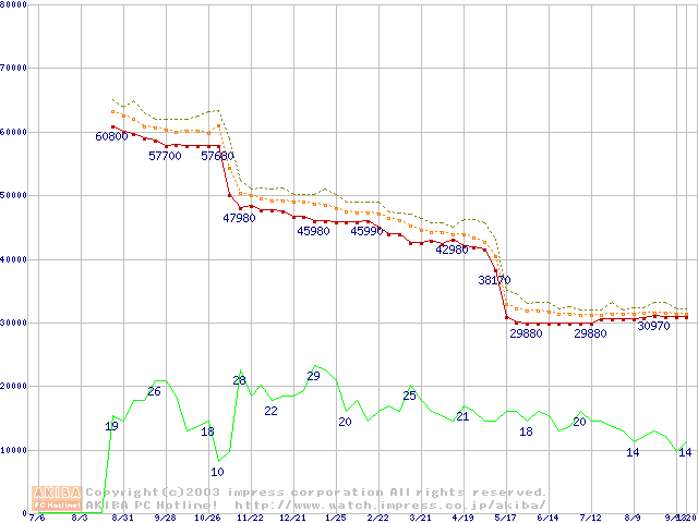 Pentium 4 2.80GHz リテールパッケージの価格推移
