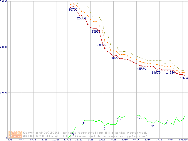 DiamondMax Plus 9 (7200rpm,2MB,UltraATA/133,FDB)の最安値推移