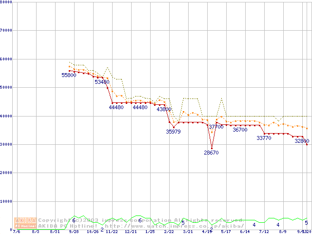 Socket 603 (micro-PGA,FSB 400MHz,L2 512KB,Prestonia)の最安値推移