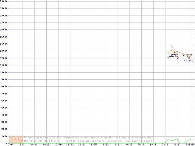 Socket A (OPGA,FSB 266MHz,L2 256KB,Thoroughbred)の最安値推移