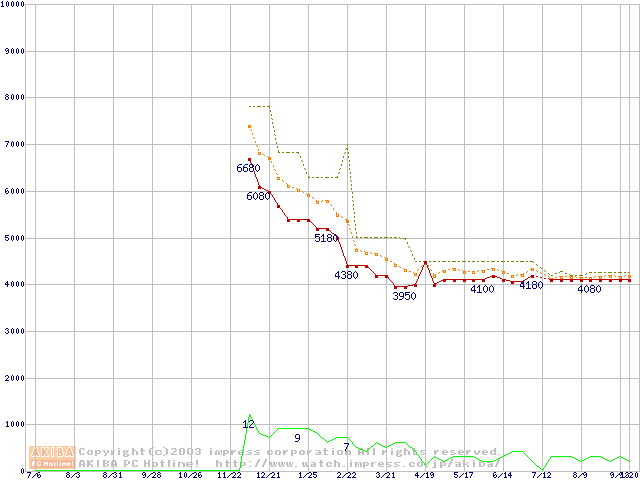 Socket 370 (PGA,FSB 100MHz,L2 64KB,Ezra)の最安値推移