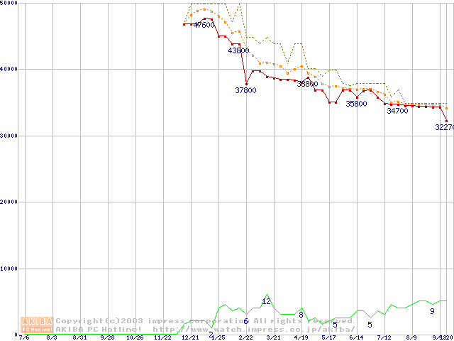 Xeon 2.66GHz(FSB533) リテールパッケージの価格推移