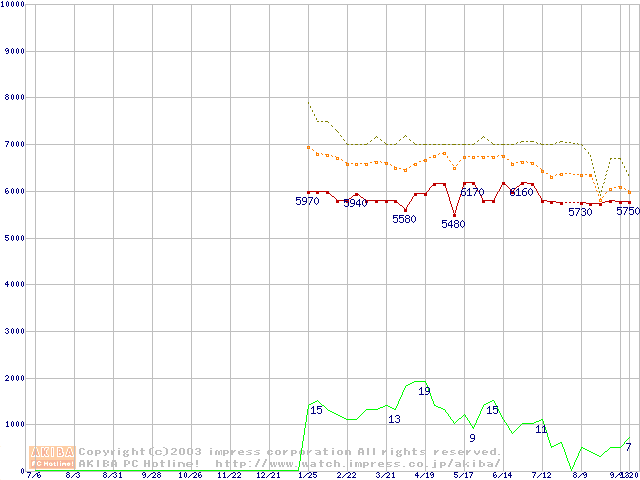 Socket A (OPGA,FSB 266MHz,L2 256KB,Thoroughbred)の最安値推移
