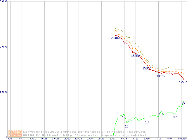 Barracuda 7200.7 (7200rpm,UltraATA/100,2MB,80GB/Platter,FDB)の最安値推移