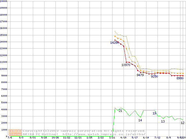 Socket 478 (micro-PGA,FSB 400MHz,L2 128KB,Northwood)の最安値推移