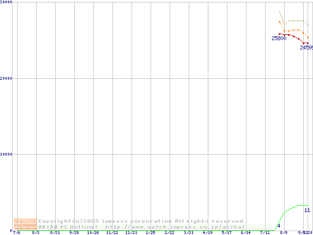 2.5インチHDD主要製品(最安値2万円~3万円未満)の最安値推移