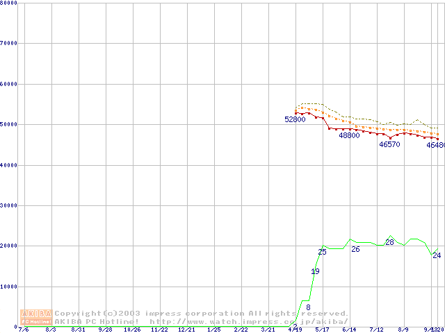 Socket 478 (micro-PGA,FSB 800MHz,L2 512KB,Hyper-Threading,Northwood)の最安値推移